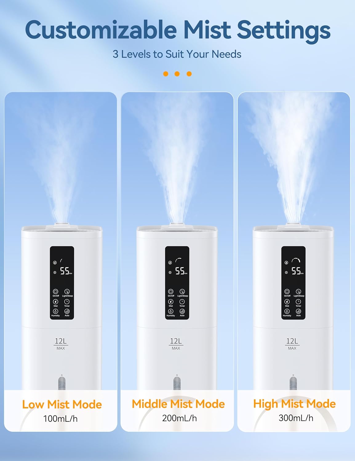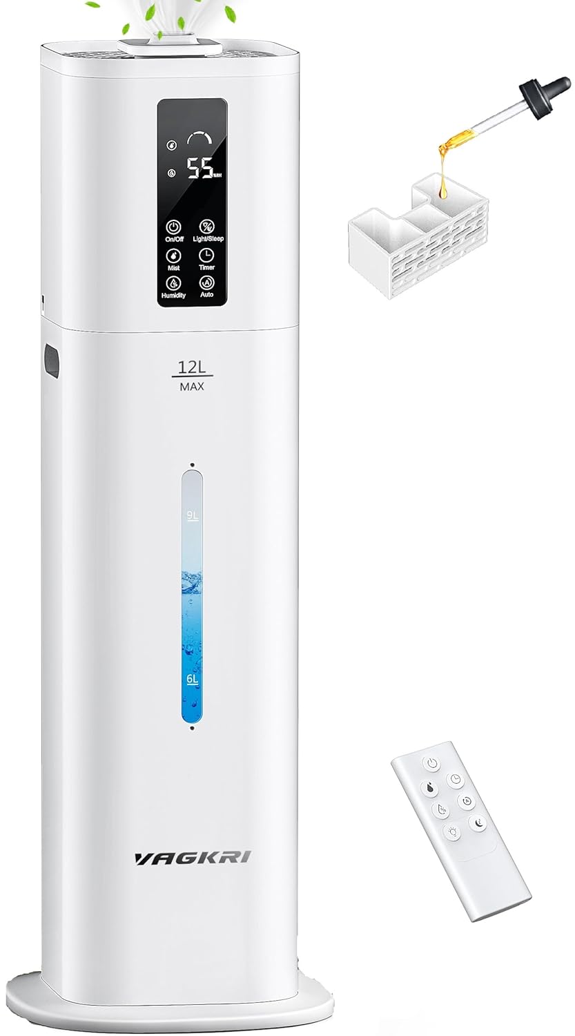 12L Humidifiers Last 120 Hours, Cover up to 1000ft², Top Fill Ultrasonic Cool Mist Humidifier, 3 Mist Level, 24H Timer, Essential Oil Diffuser Humidifiers For Bedroom, Home