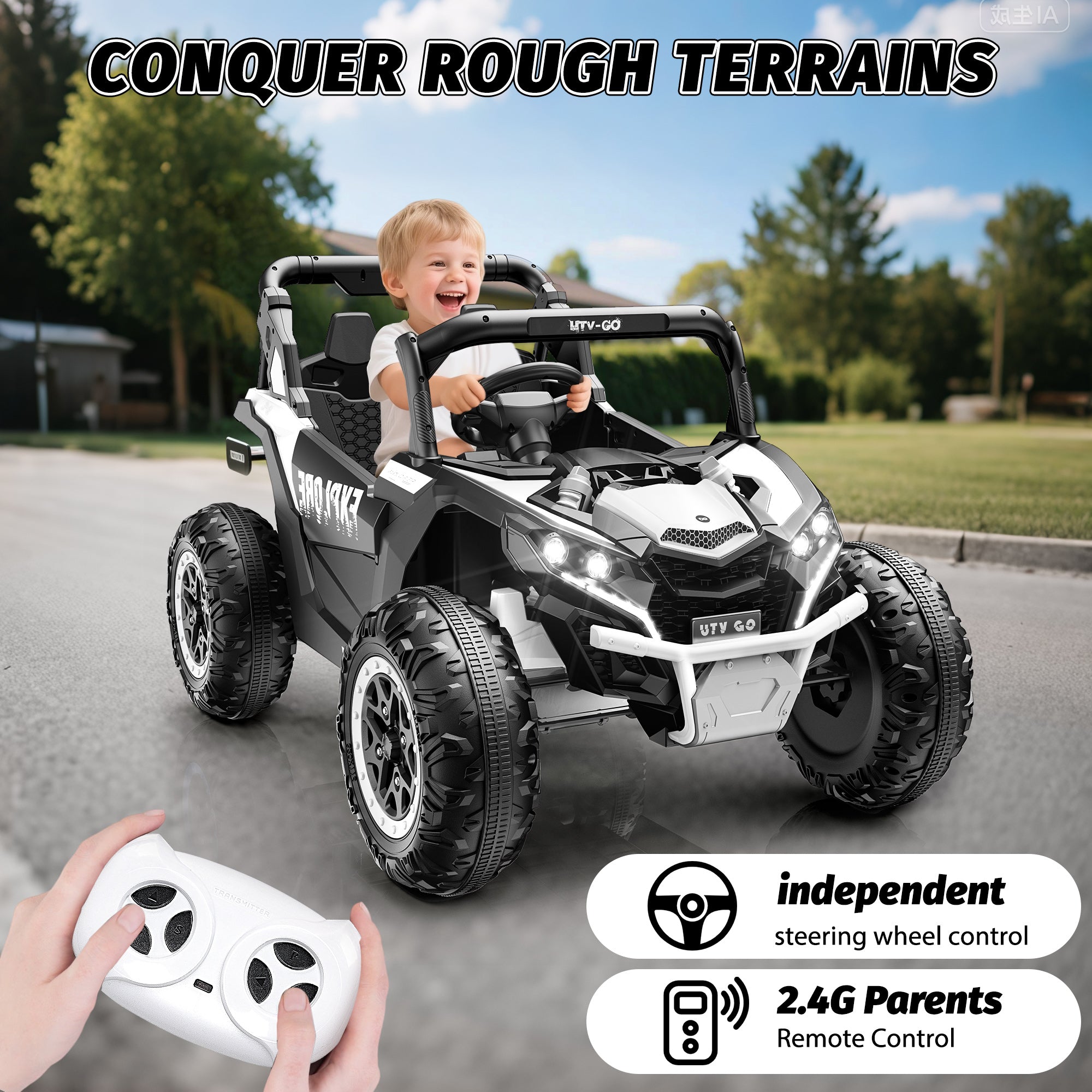 - 【Powerful Performance】: With a robust 24V 7AH battery and four 40W motors, this UTV offers up to 120 minutes of playtime, easily handling various terrains thanks to dual rear shock absorbers.